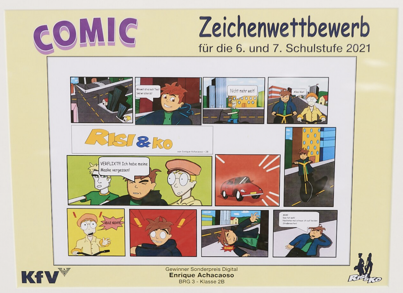 Als Landessiegerin gewann die Schülerin Valentina Jerabek bei der Comic-Challenge des KFV. Enrique Achacaoso gewann im Zuge des Wettbewerbs den „Sonderpreis Digital“.