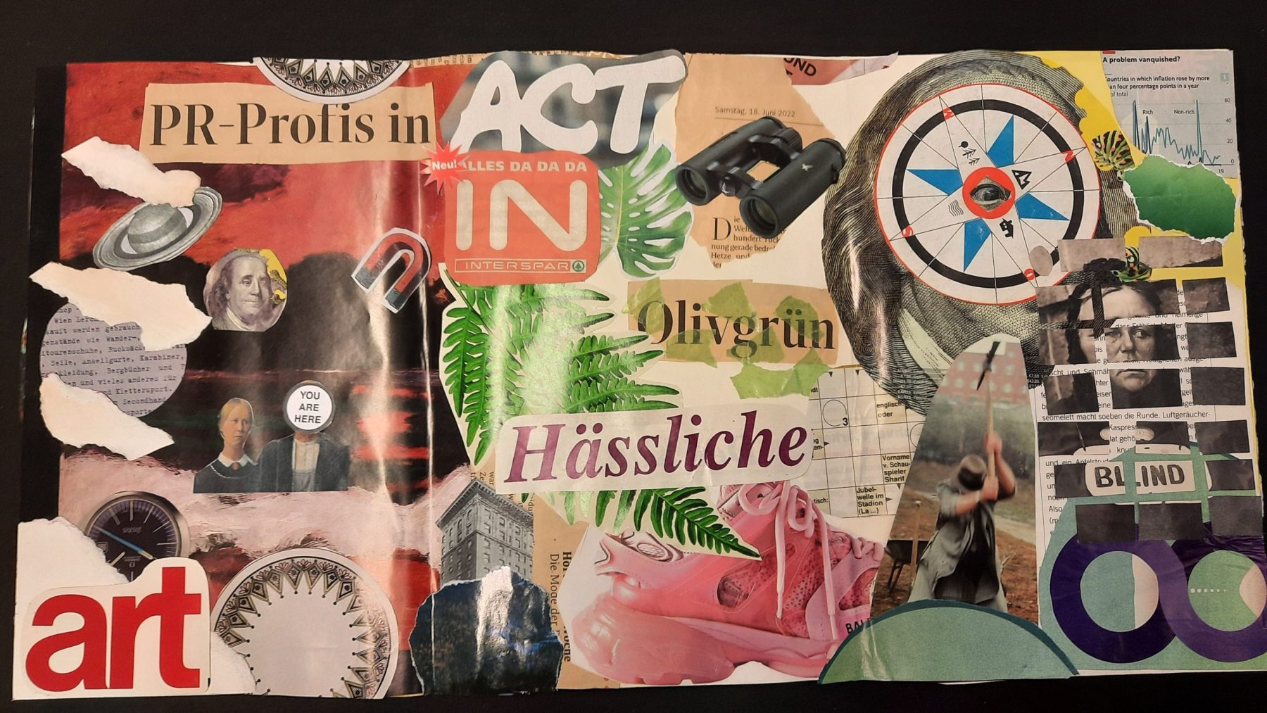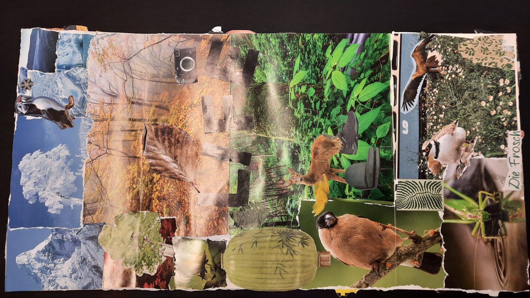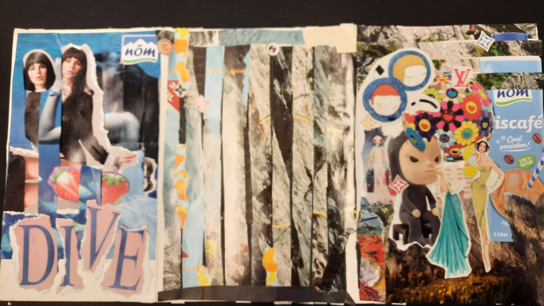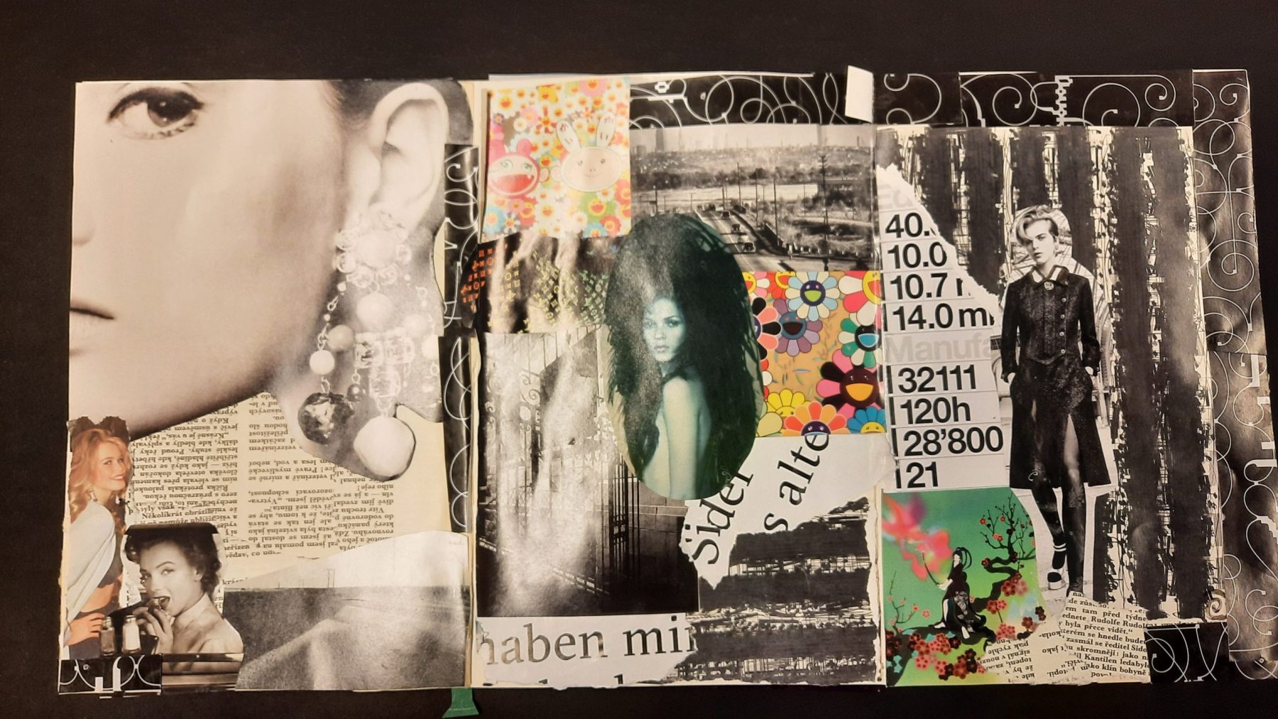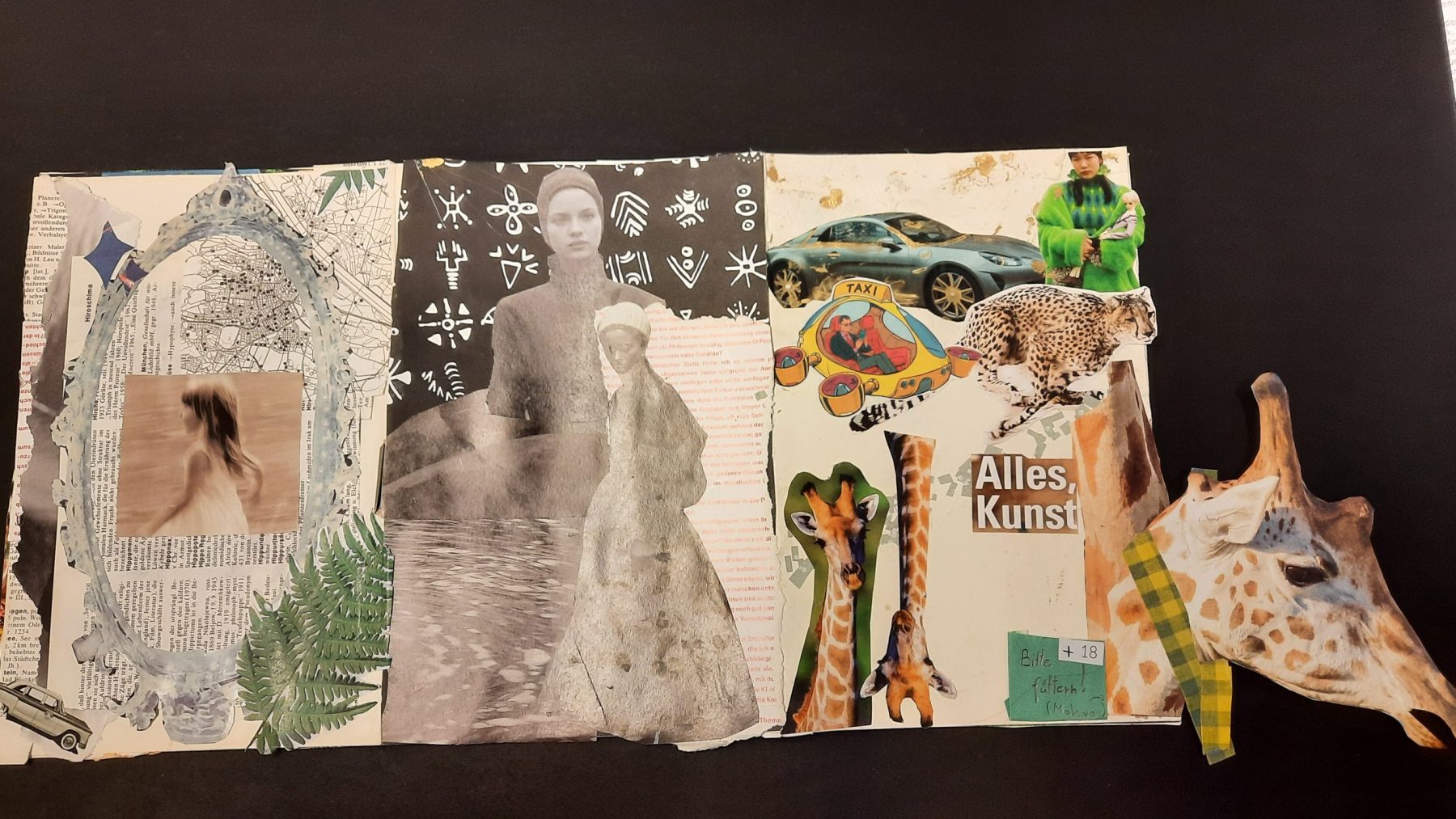 4B- Leporello: Ich- innen und außen Ausgehend vom Konzept einer inneren und äußeren Persönlichkeit haben die Schüler:innen ein Selbstporträt in Collagetechnik dargestellt.