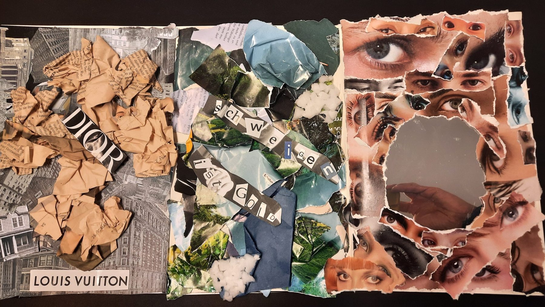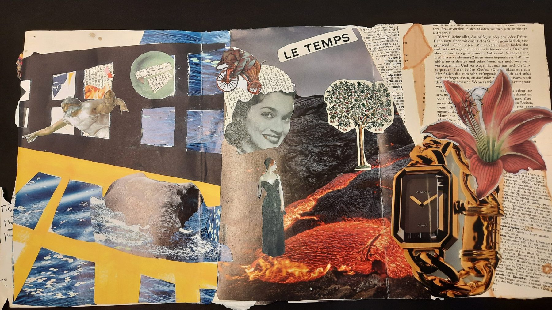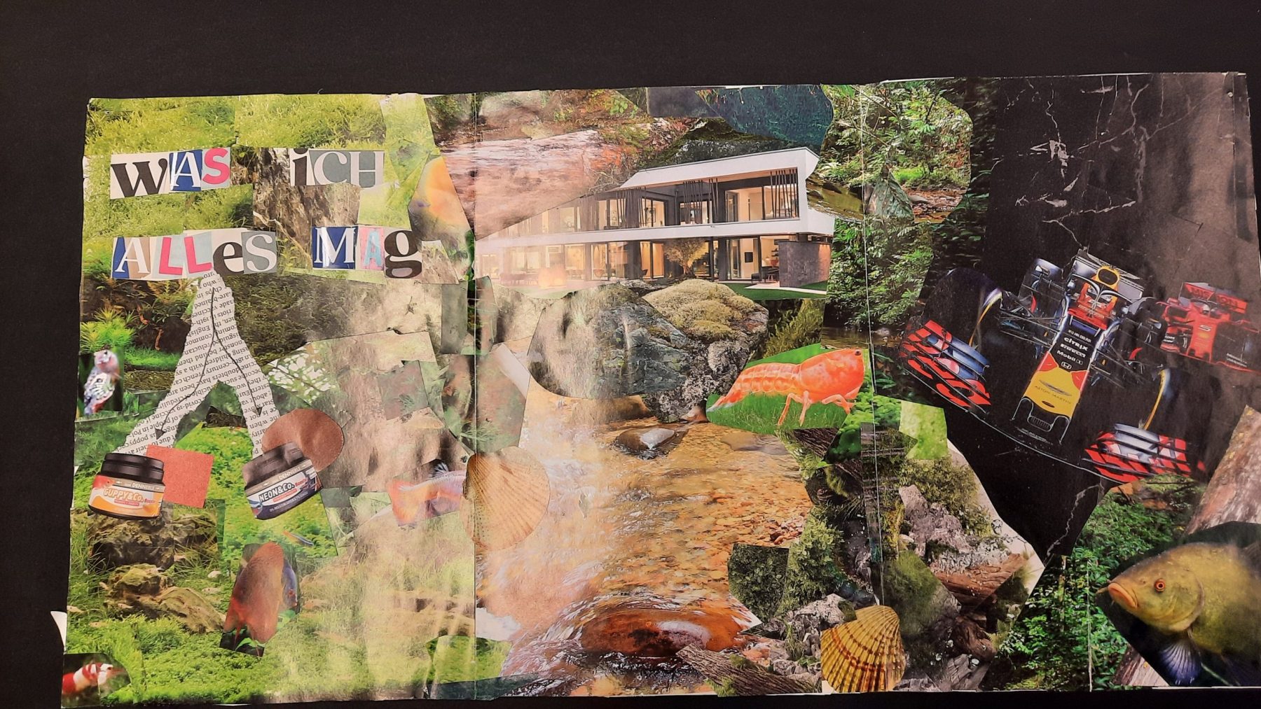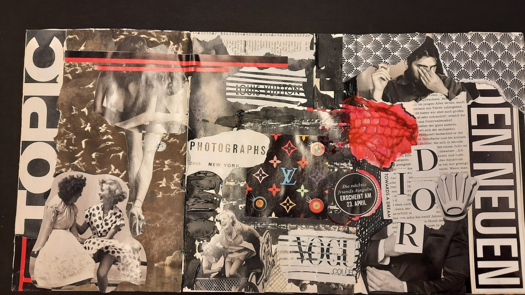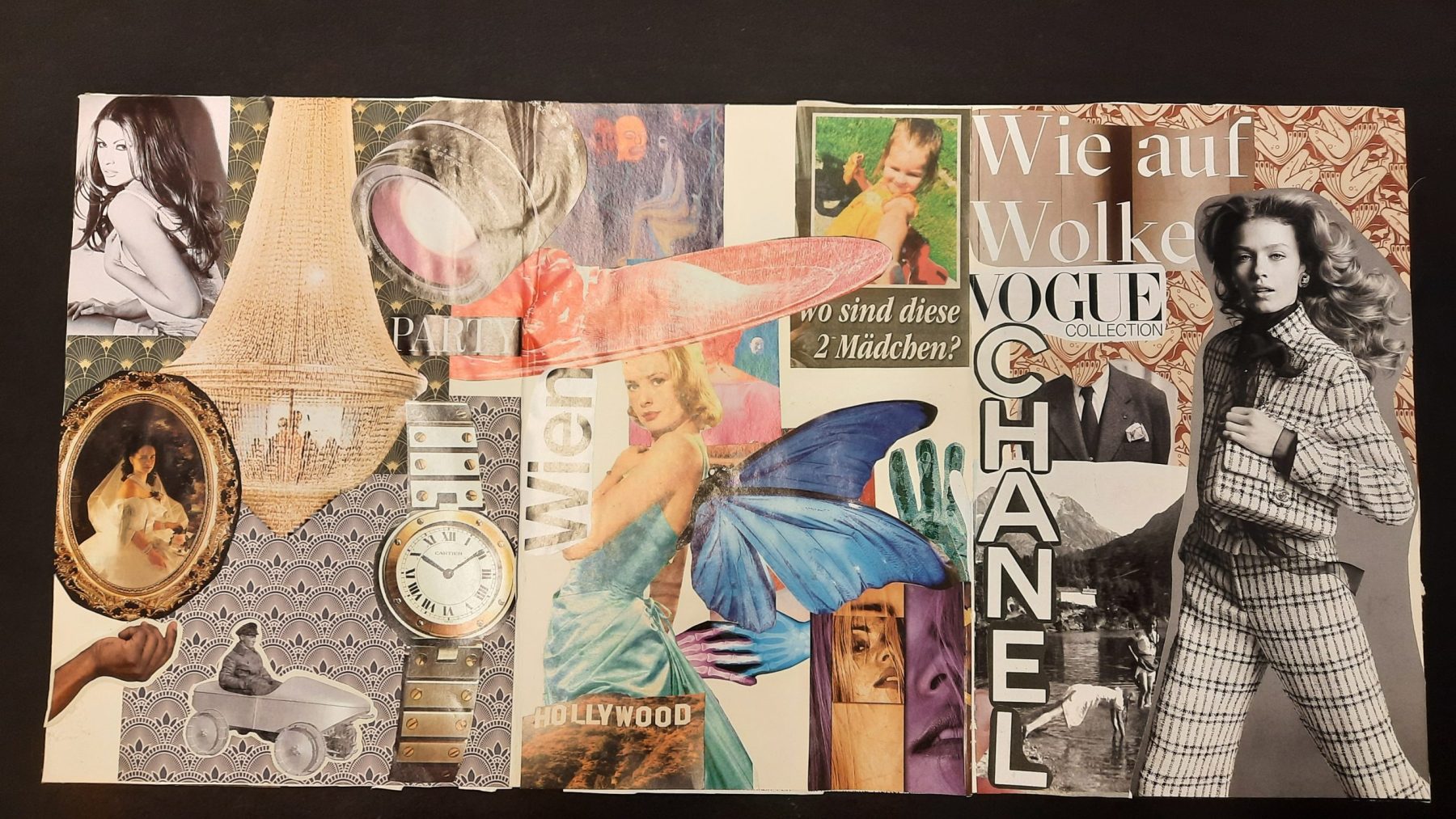 4B- Leporello: Ich- innen und außen Ausgehend vom Konzept einer inneren und äußeren Persönlichkeit haben die Schüler:innen ein Selbstporträt in Collagetechnik dargestellt.