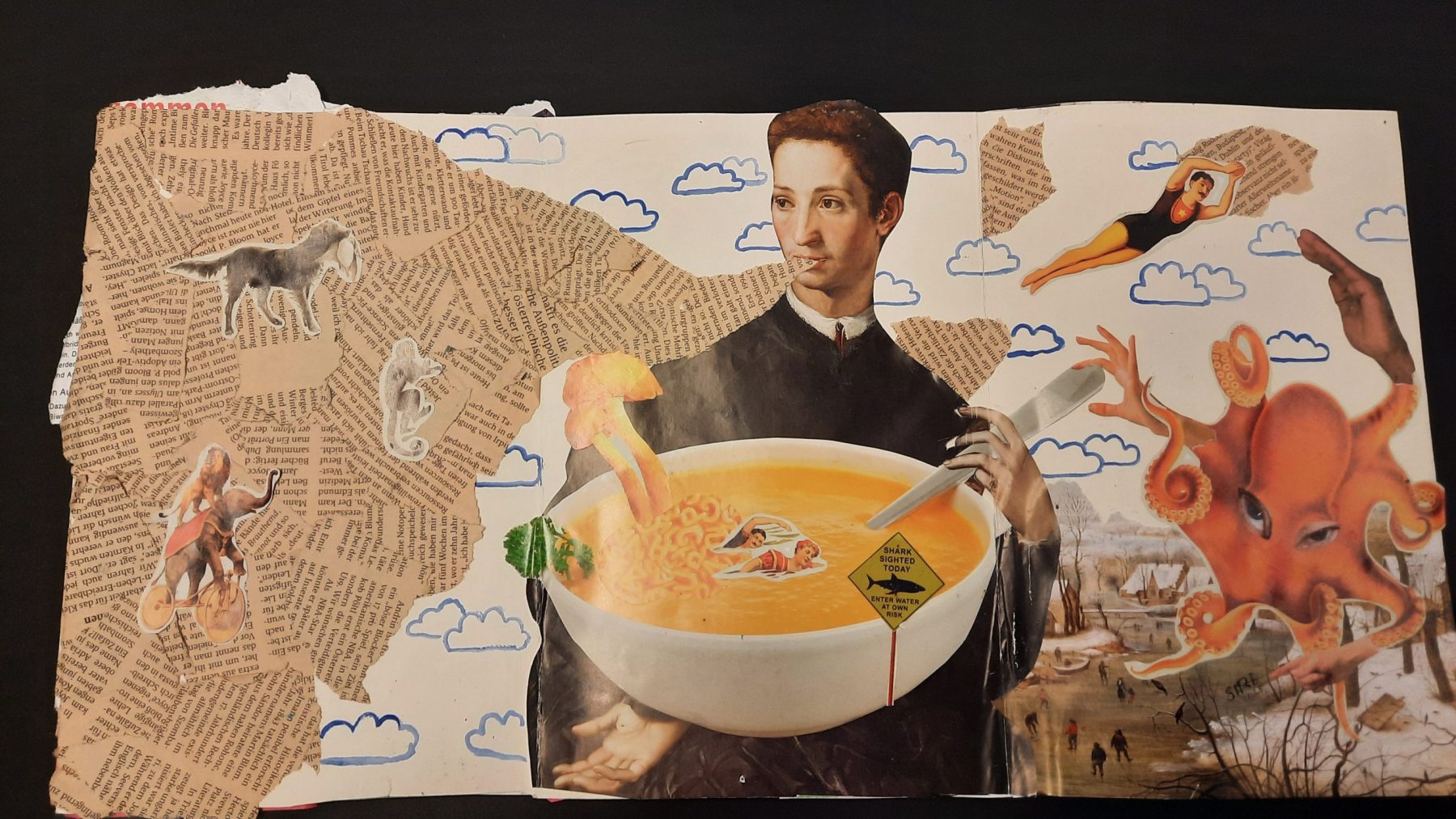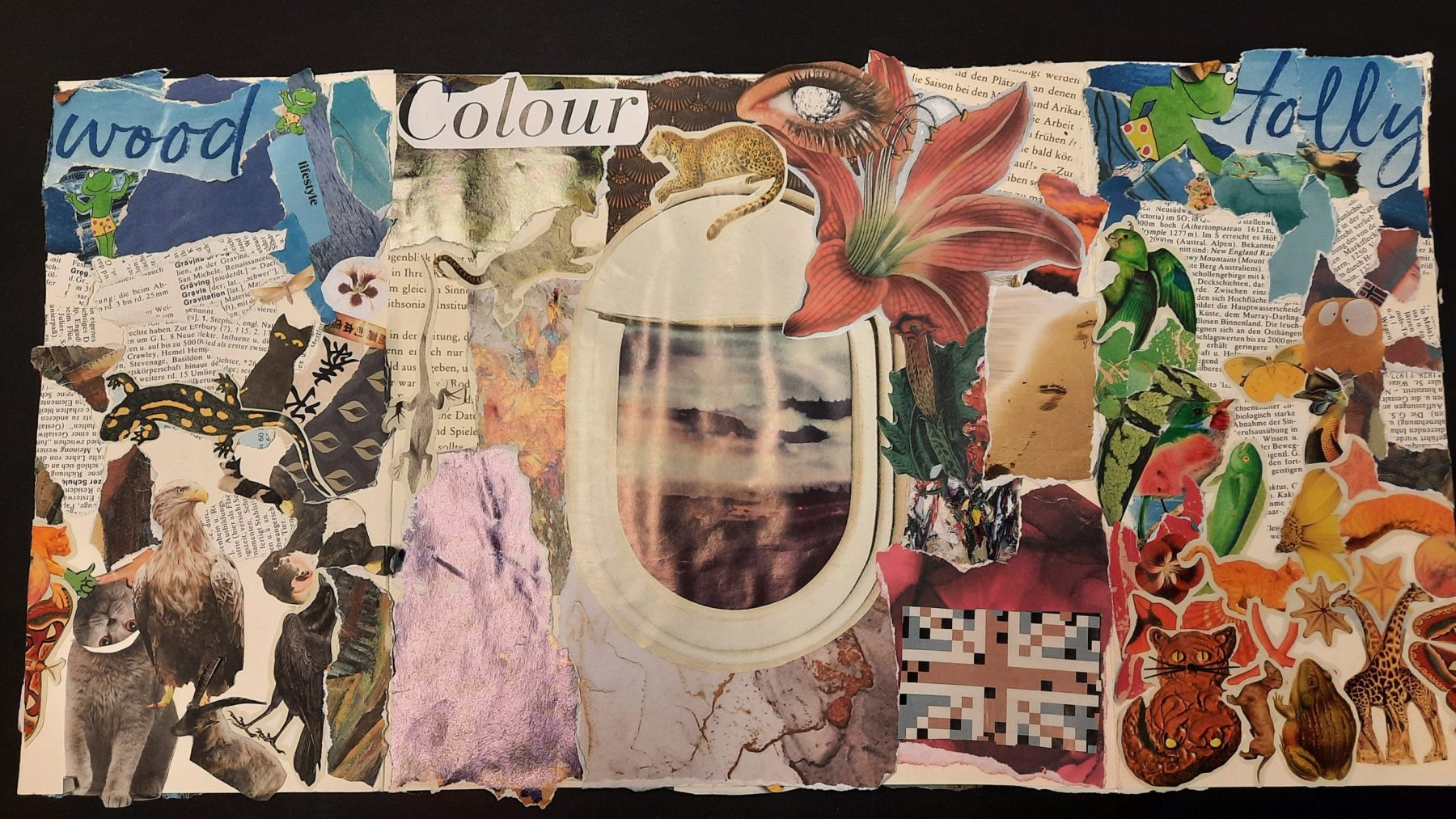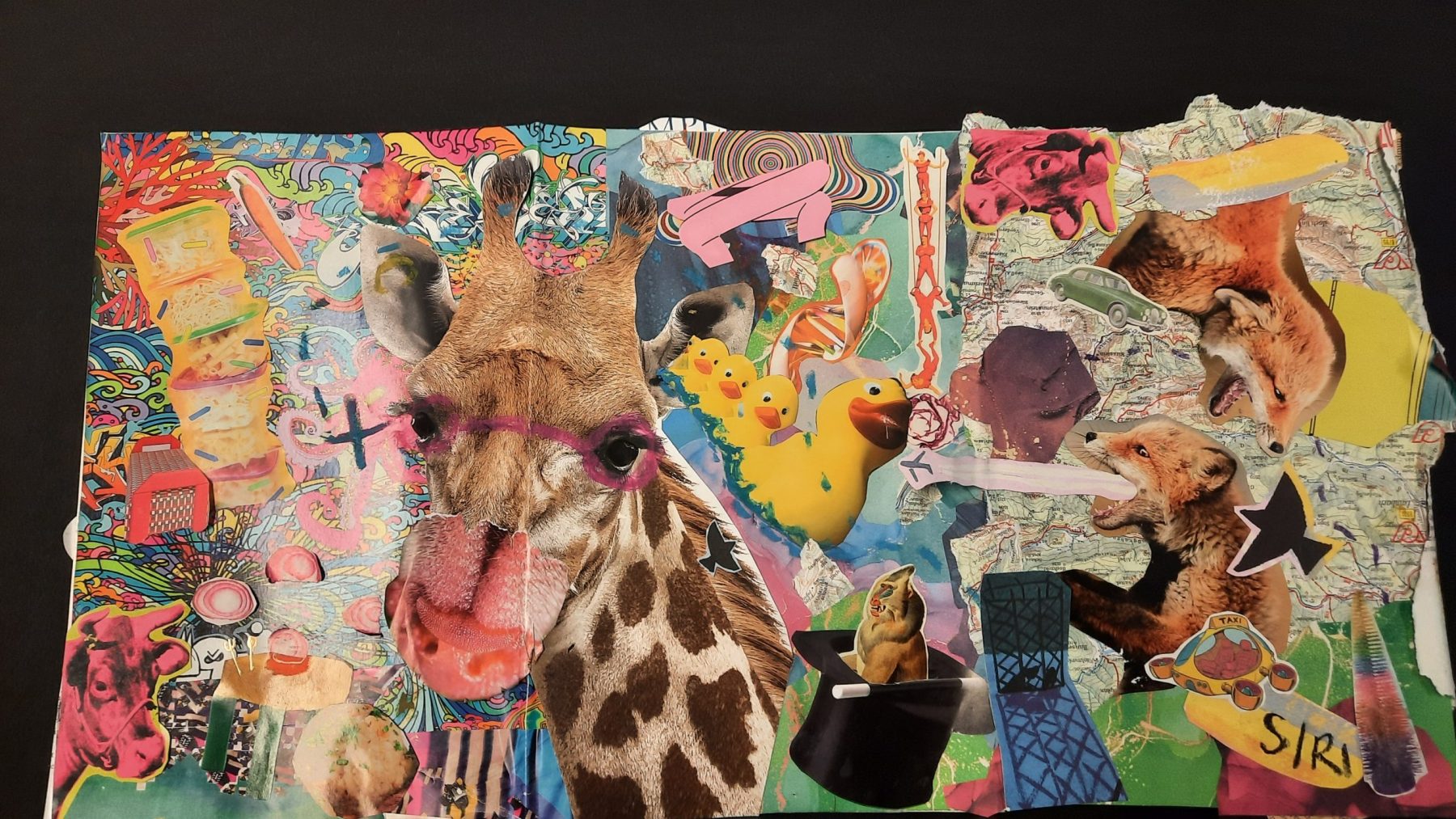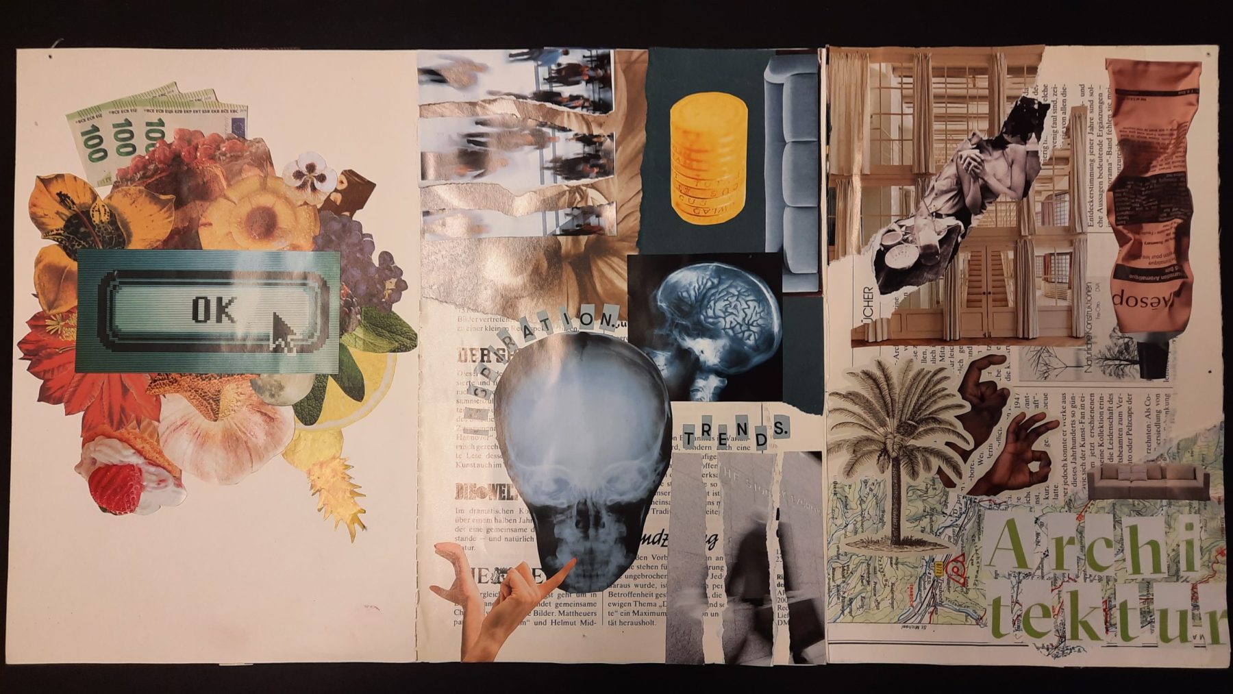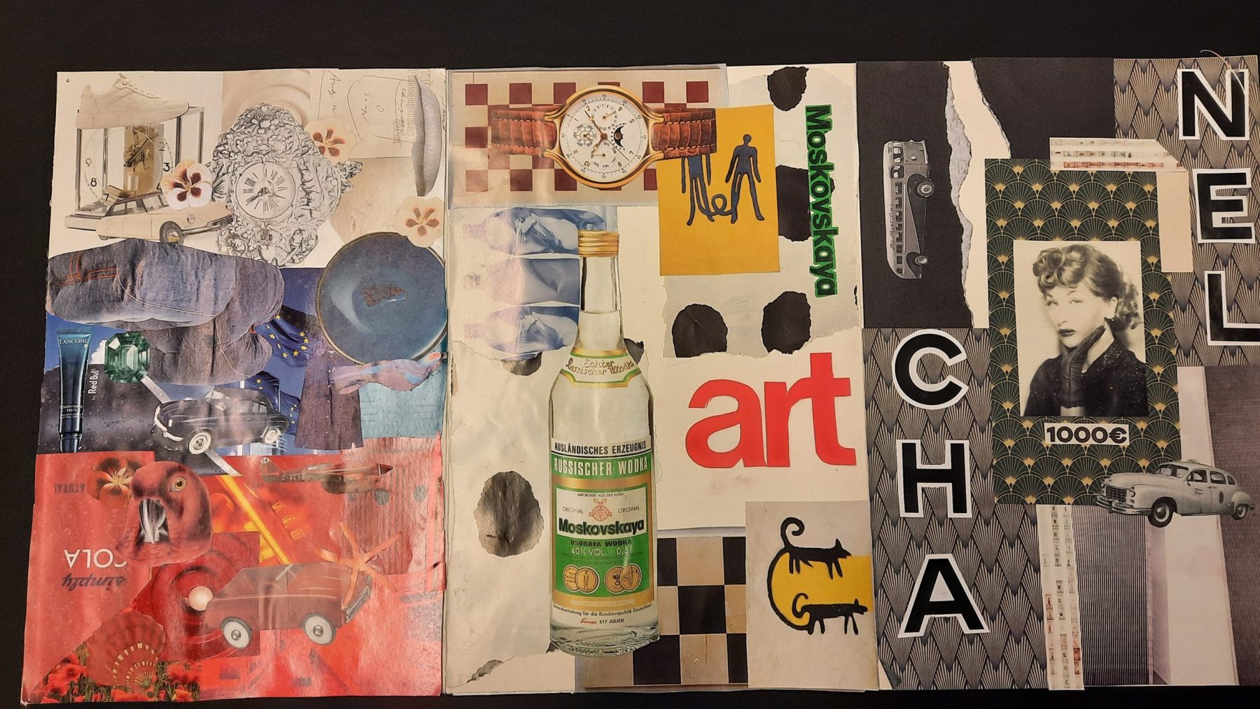 4B- Leporello: Ich- innen und außen Ausgehend vom Konzept einer inneren und äußeren Persönlichkeit haben die Schüler:innen ein Selbstporträt in Collagetechnik dargestellt.