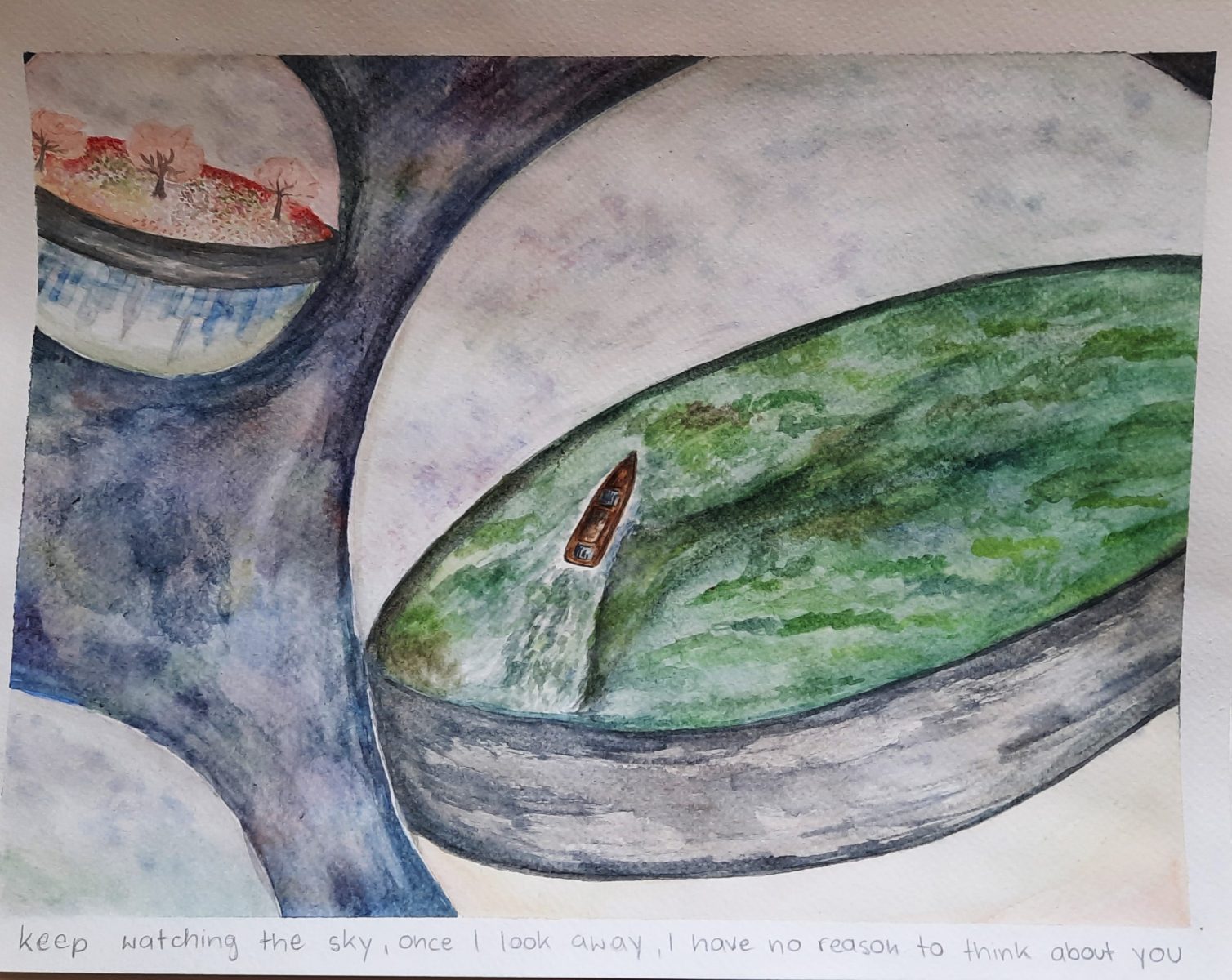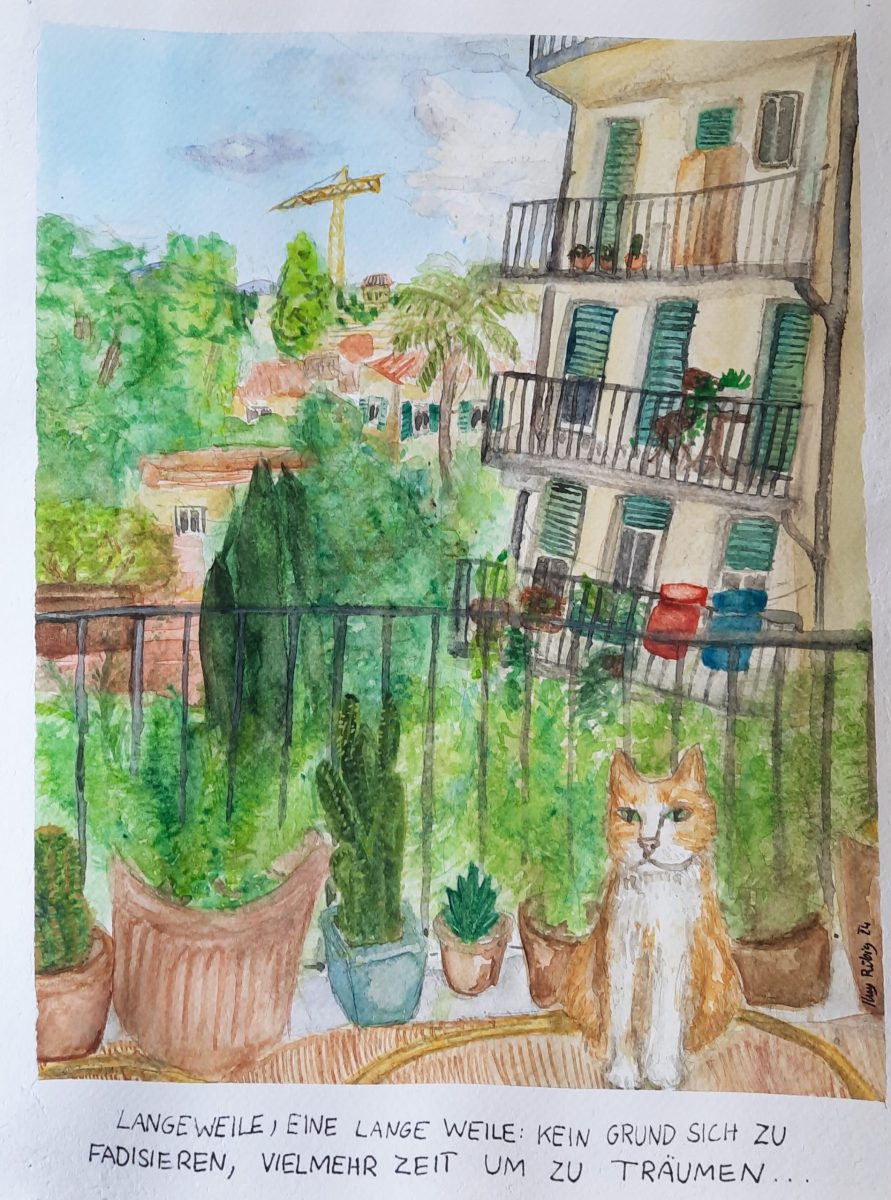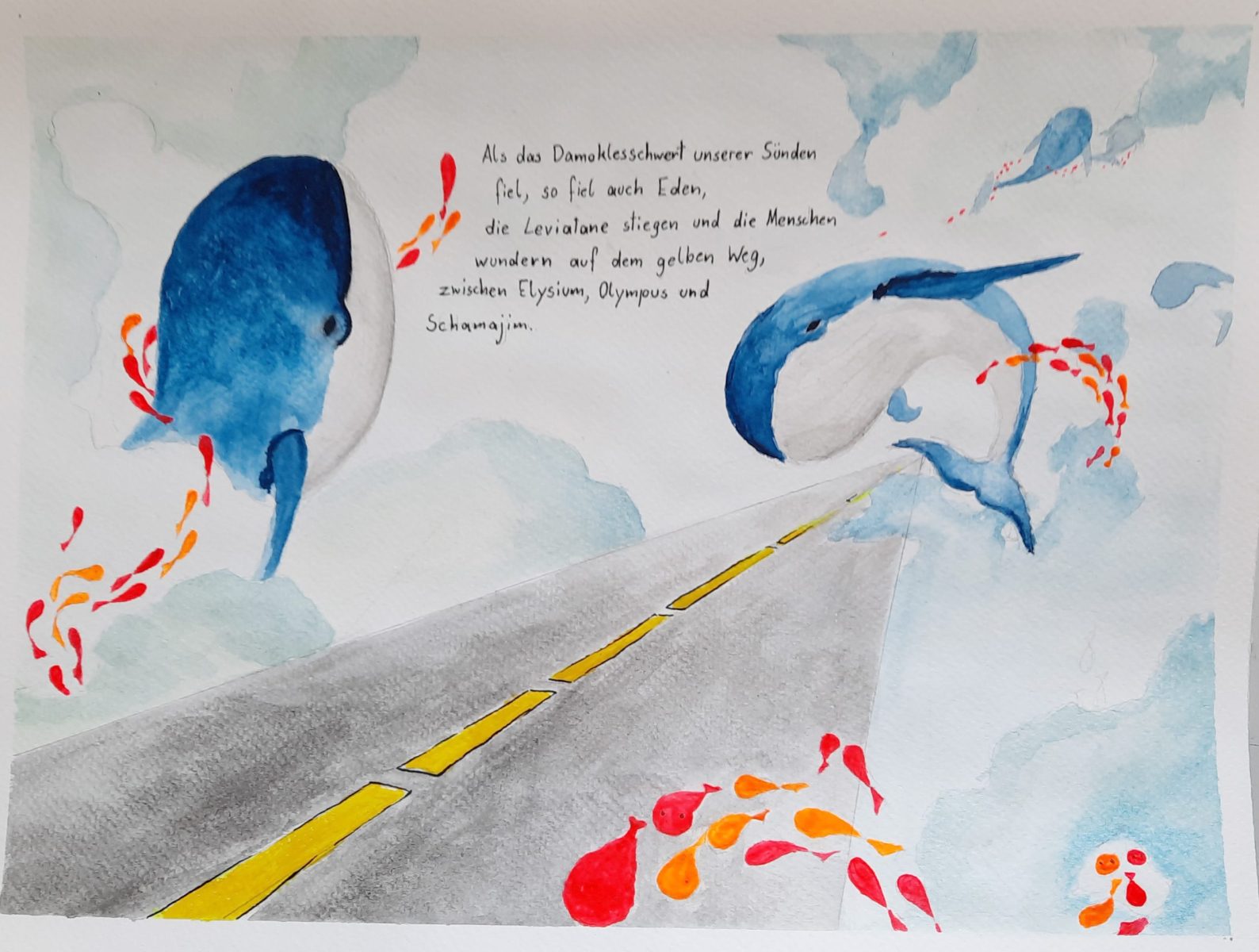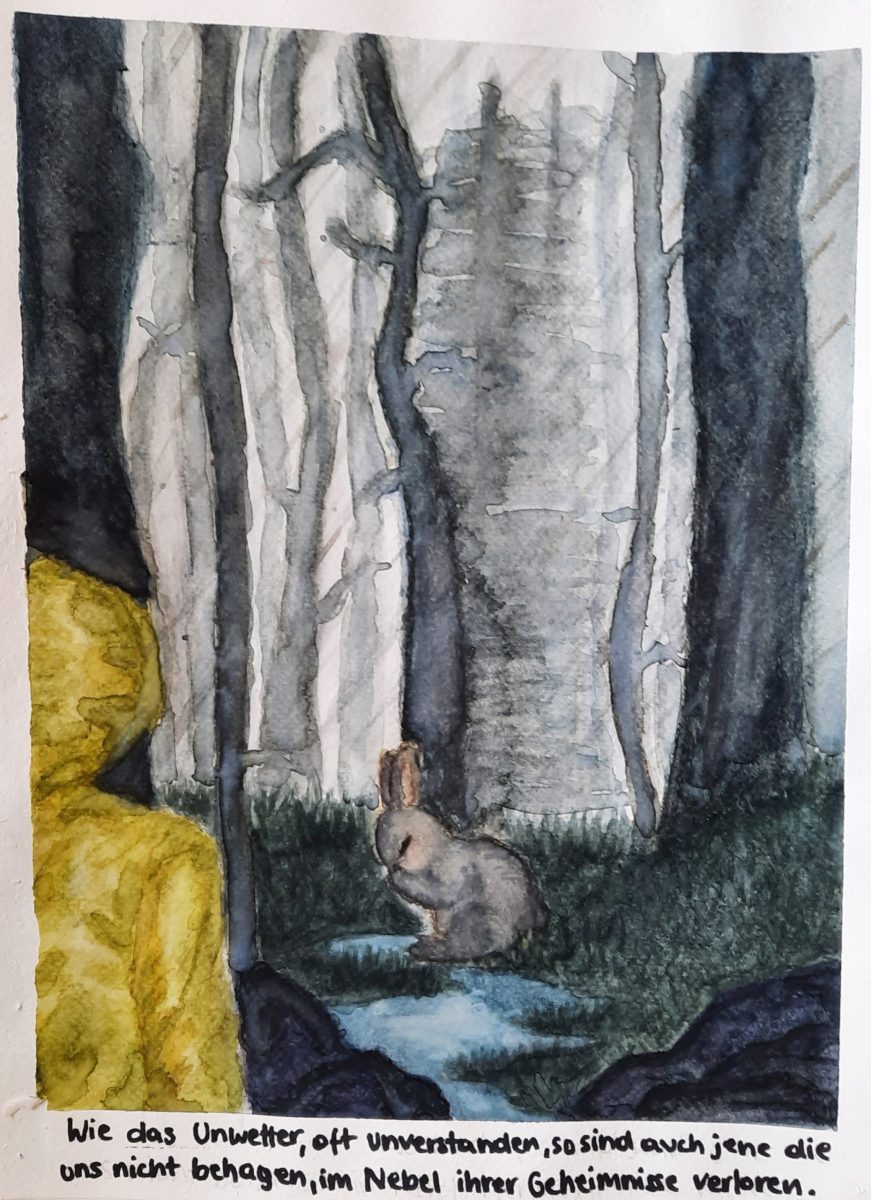 Ausgehend von Bildern des Künstlerduos Muntean und Rosenblum sollten die Schüler:innen in einer Landschaftssituation ihre Vorstellungen und Träume einer Zukunft entwickeln. Die erfundenen oder gefundenen Sätze führen uns dabei weiter oder in eine vielschichtige Irre – in teilweise utopische, dystopische oder persönliche Statements.