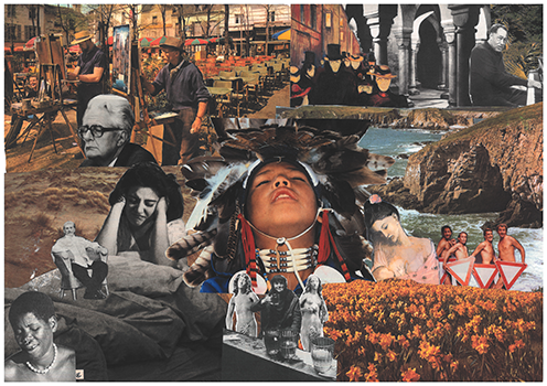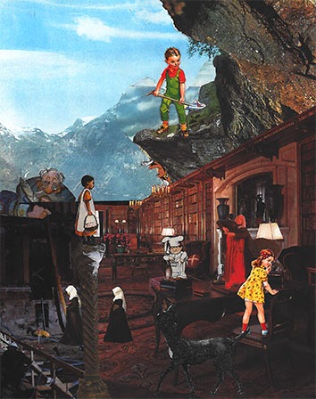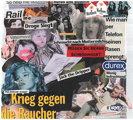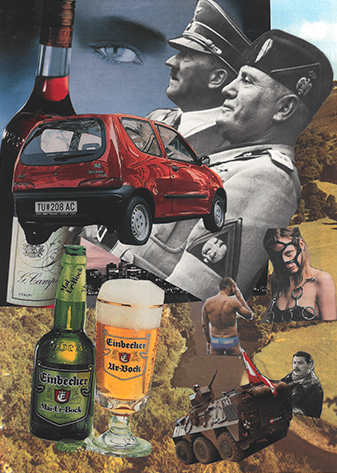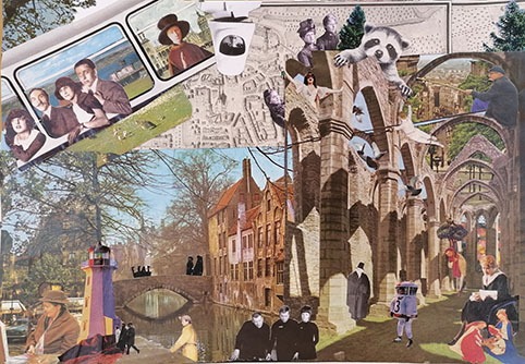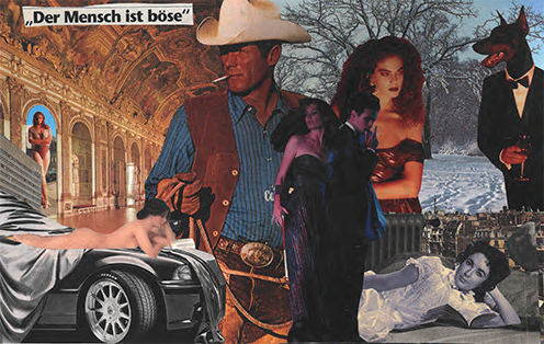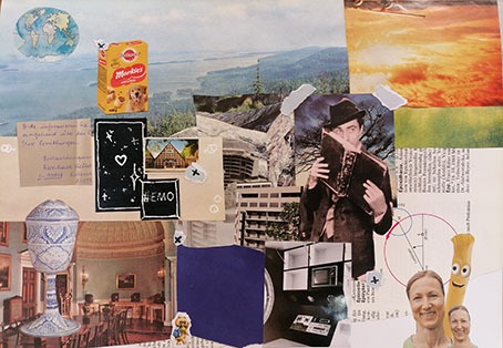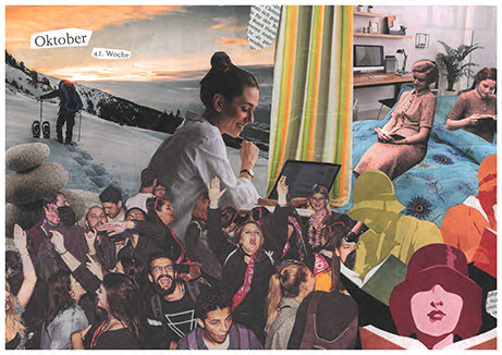 Die Schüler*innen der 4AB gestalteten im Rahmen eines Workshops mit dem Künstler Gerd Leschanowsky vielschichtige analoge Collagen. Es war ein intuitives Arbeiten mit Motiven aus zahlreichen alten Magazinen, Kalendern und Büchern, welches Spaß machte.