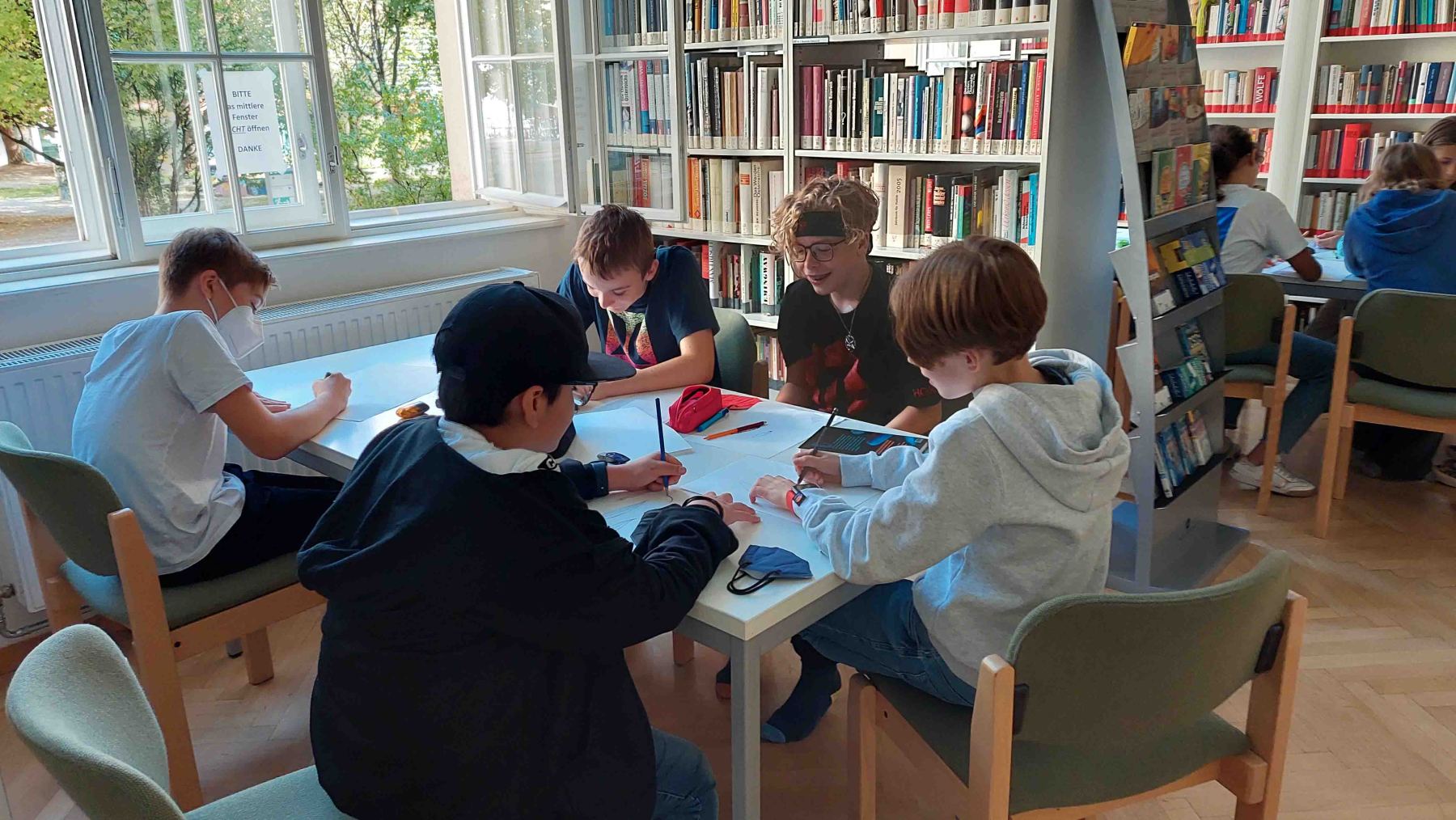 In Gruppen setzten sich die Schüler*innen anschließend je nach Vorliebe auf sprachliche, literarische, wissenschaftliche oder bildnerisch-kreative Weise mit dem Buch auseinander.