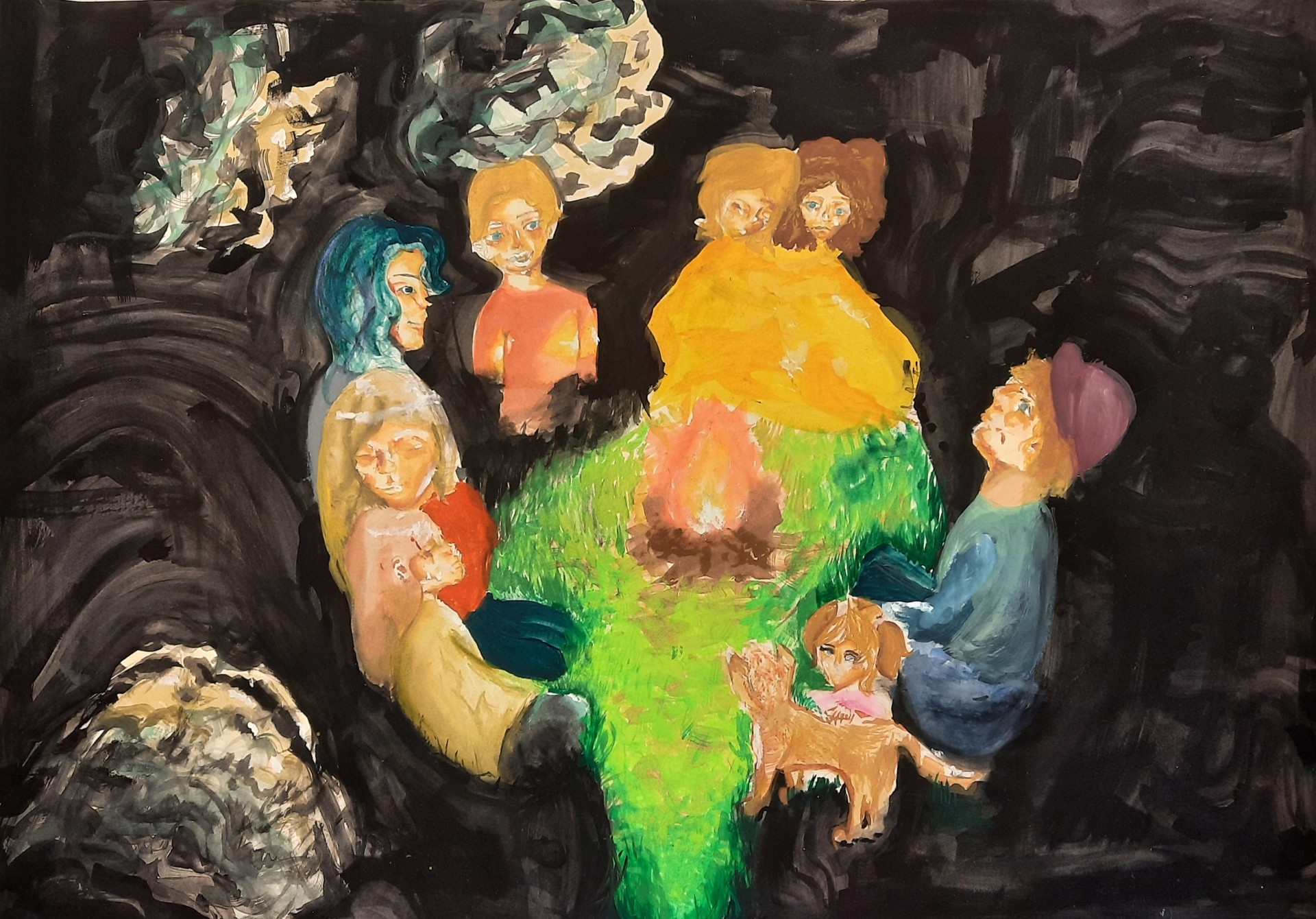 Seit der Antike werden politische Botschaften durch Kleidung zum Ausdruck gebracht. Dieses Bild zeigt eine Frau, die ein weiß-blaues Tuch um sich gelegt hat, mit einem Kind auf dem Arm, das einen blau-gelben Haarreifen auf dem Kopf trägt. Ich habe sie bei den Protesten von „Russians against war“ gesehen. Die Farben blau und weiß symbolisieren den Frieden, den ich mir für die Ukraine und auch für Russland wünsche.