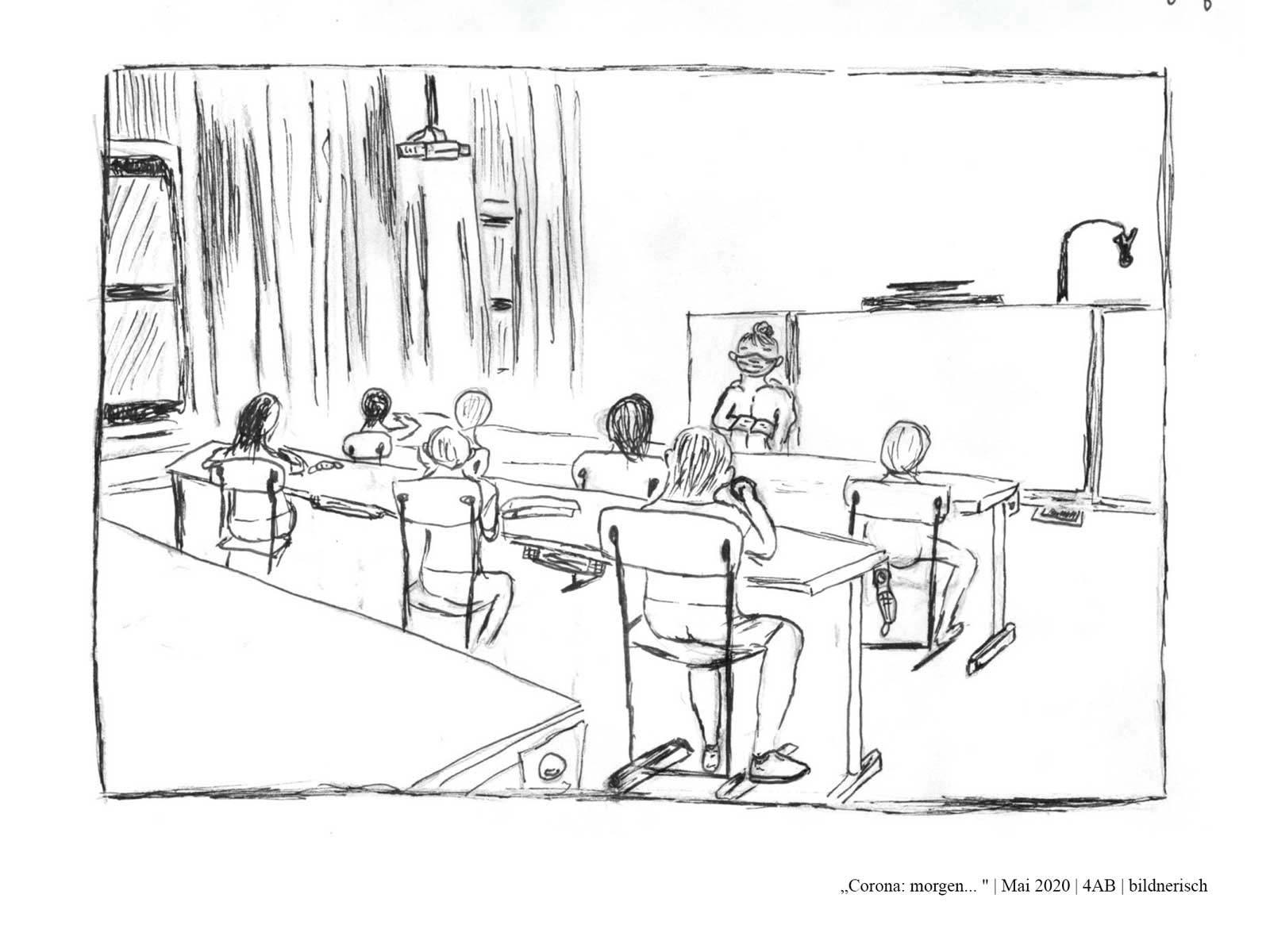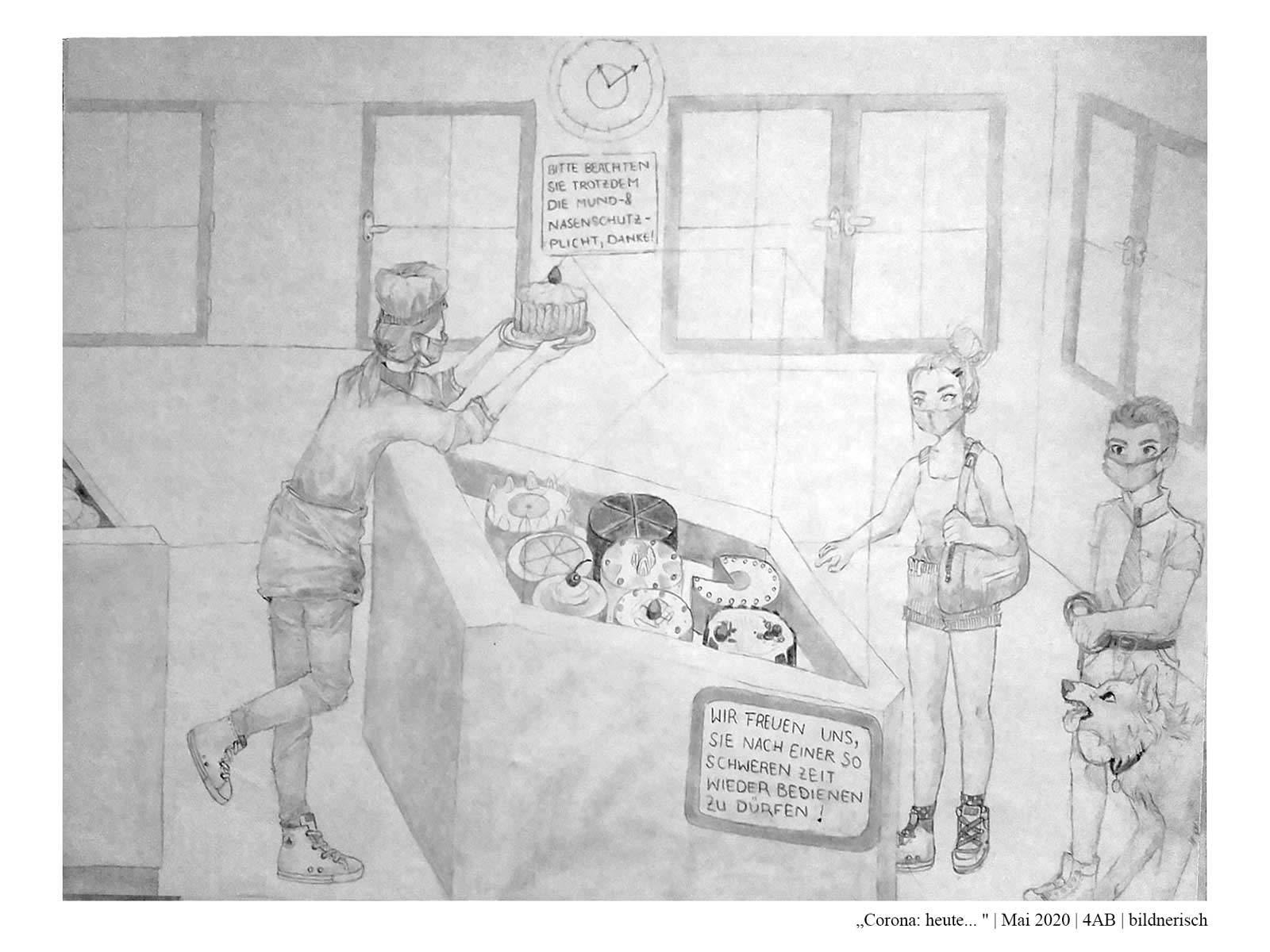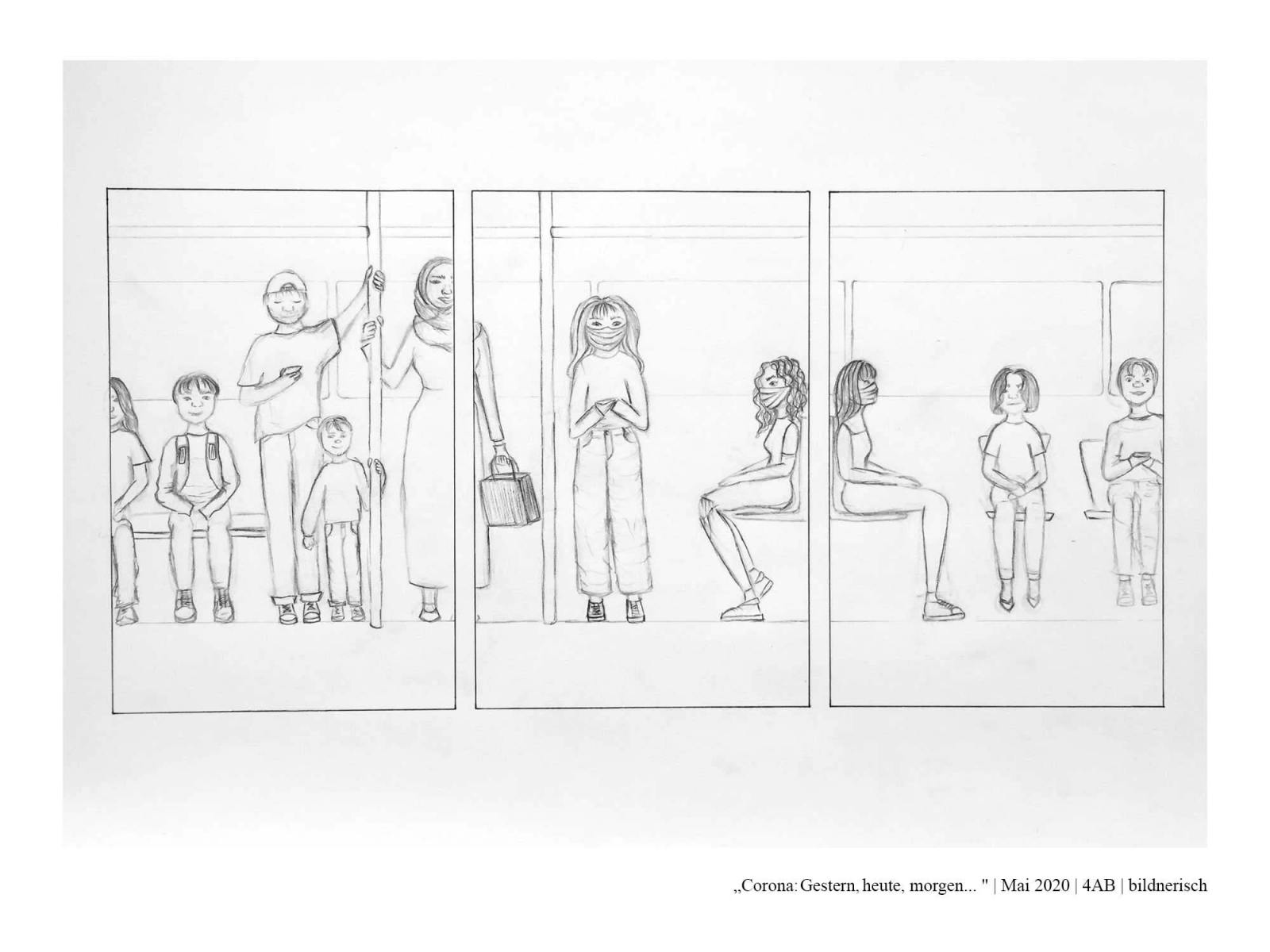 Die Schüler*innen der 4AB haben sich während des Lockdowns im Frühjahr 2020 mit dem aktuellen Zeitgeschehen auseinandergesetzt. Dabei haben sie sich folgende Fragen gestellt: Wie hat unser Alltag noch bis vor Kurzem ausgesehen? Was hat sich durch den Lockdown verändert? Wie könnte unser Alltag in Zukunft aussehen? Was wird trotz allem gleich bleiben? Wie könnte es weitergehen? Zur Zeit: Gestern, heute, morgen…