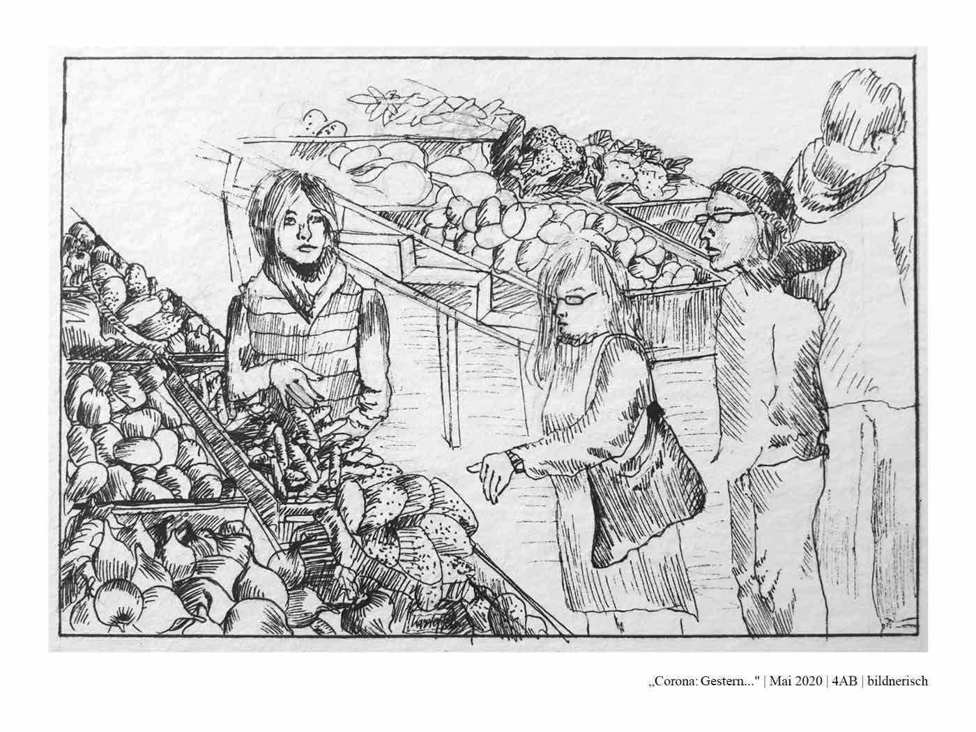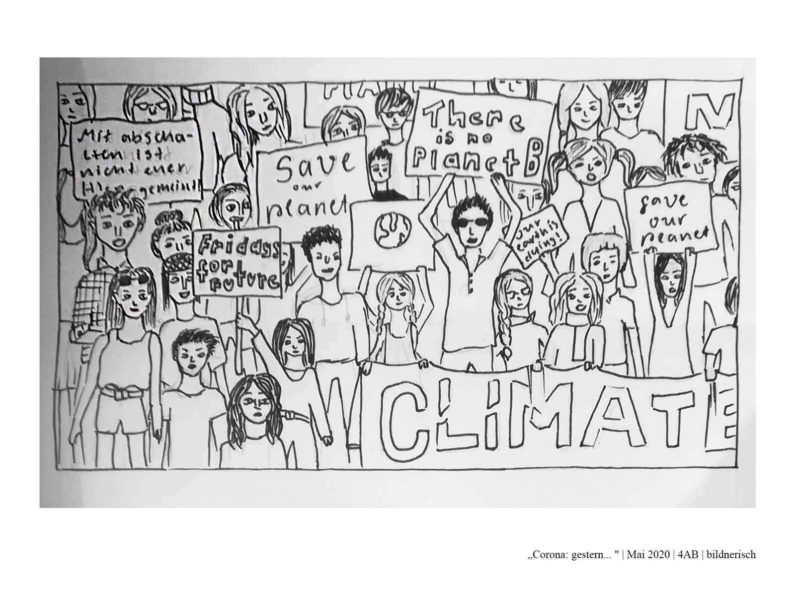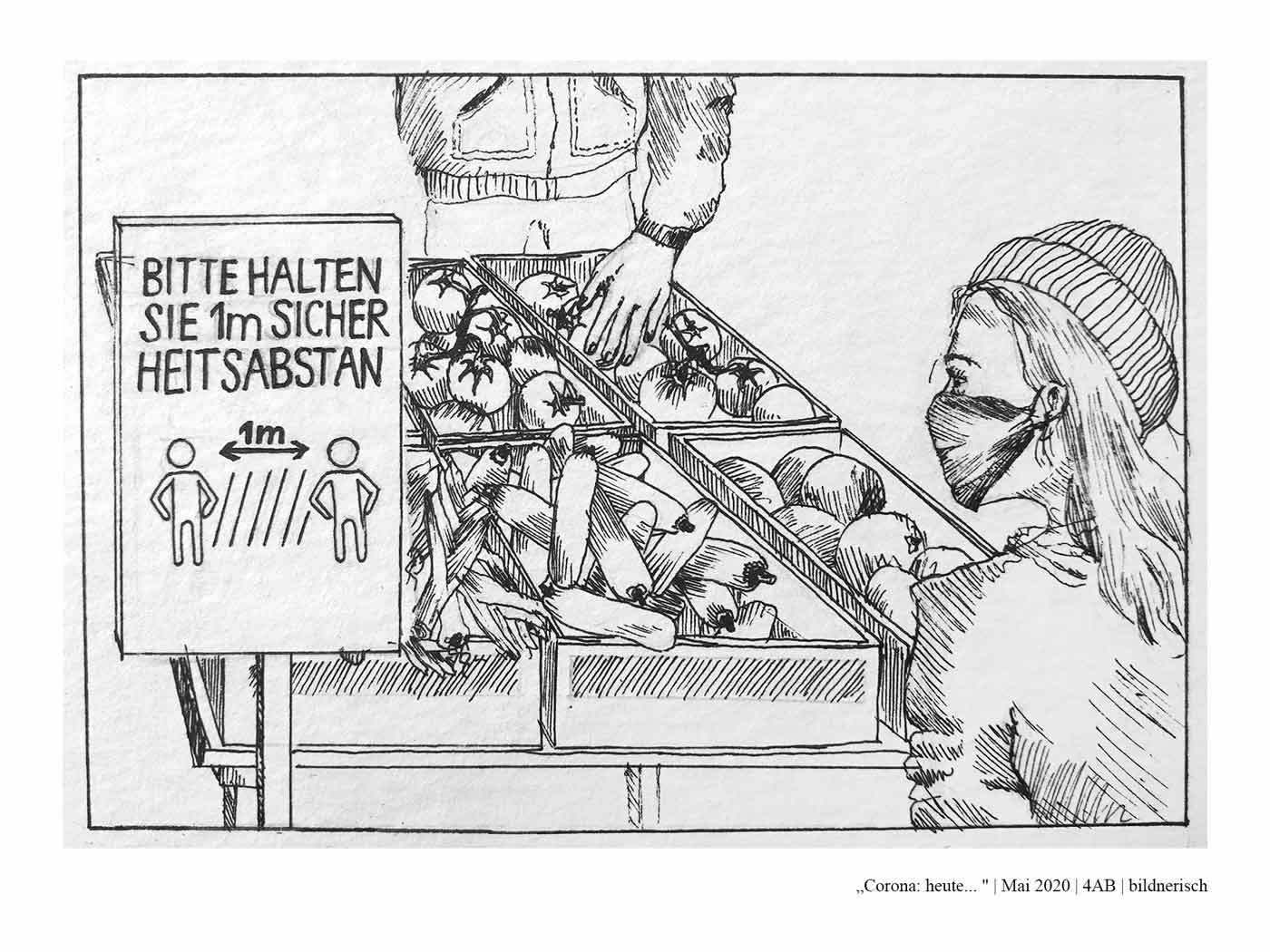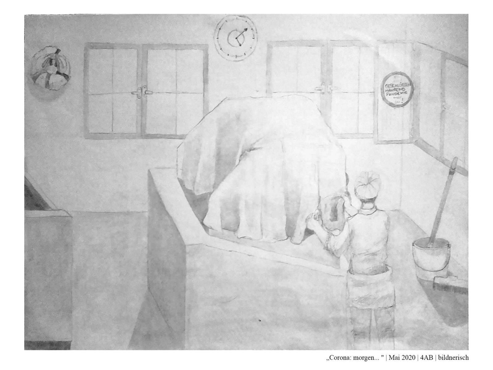 Die Schüler*innen der 4AB haben sich während des Lockdowns im Frühjahr 2020 mit dem aktuellen Zeitgeschehen auseinandergesetzt. Dabei haben sie sich folgende Fragen gestellt: Wie hat unser Alltag noch bis vor Kurzem ausgesehen? Was hat sich durch den Lockdown verändert? Wie könnte unser Alltag in Zukunft aussehen? Was wird trotz allem gleich bleiben? Wie könnte es weitergehen? Zur Zeit: Gestern, heute, morgen…