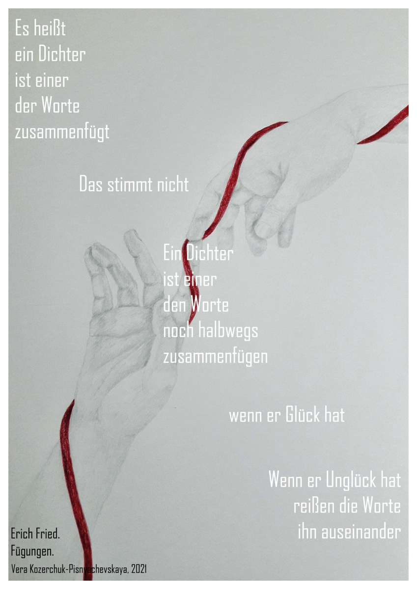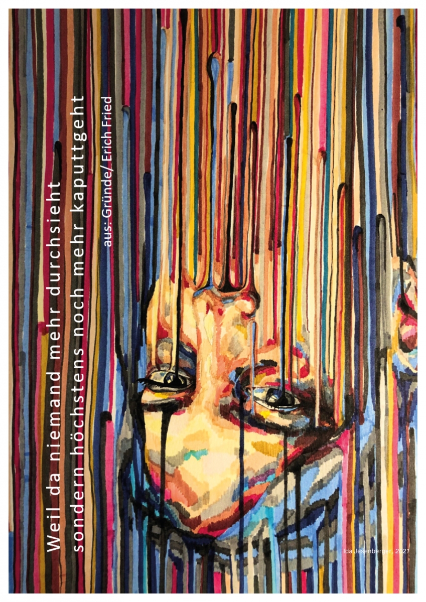 Die 7B (7A) und das Wahlpflichtfach Deutsch haben sich mit Erich Frieds Texten auseinandergesetzt und sich bildnerisch wie literarisch angenähert. Ihre eigenen künstlerischen Arbeiten präsentieren sie nicht nur auf unserer Homepage, sondern auch am 6. Mai 2021 um 11:30 Uhr live über Zoom: go.univie.ac.at/erichfried