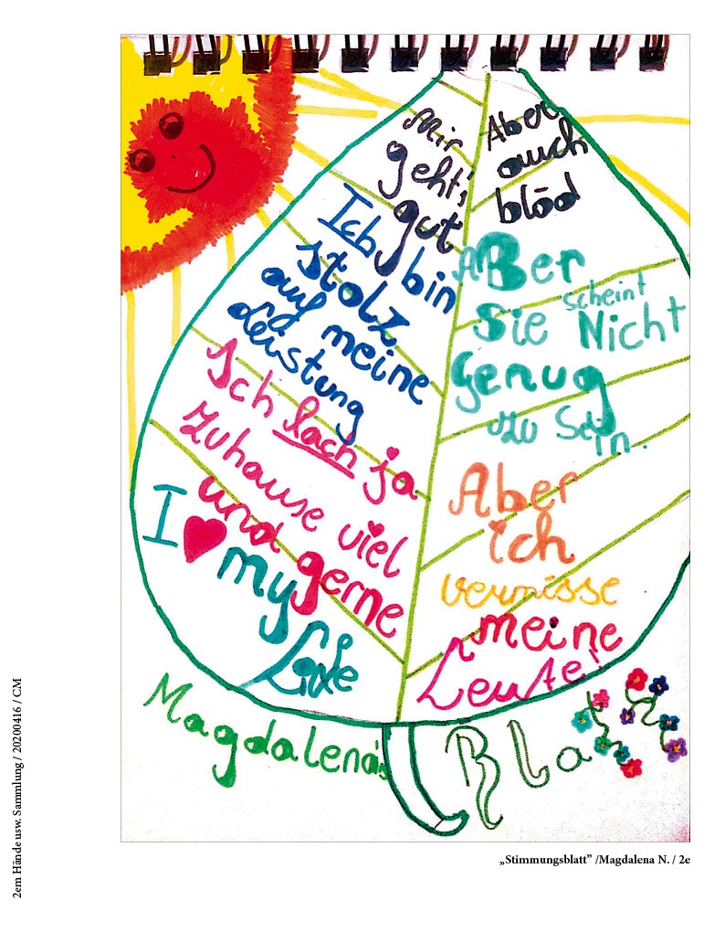 Hier ist eine kleine Auswahl der ersten Arbeiten der Klasse 2e / musikalischer Schwerpunkt. Feine bildnerische Arbeiten in einer besonderen Zeit.