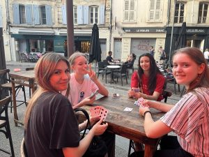 Die Stadt Avignon wurde sofort mit Begeisterung erkundet und die ersten Euros in „Tagestattoos“, Souvenirs und Eis investiert. Der nächste Tag begann mit einem Croissant und der Besichtigung des mächtigen Papstpalastes. Während im Palast die Vorbereitungen für das Theaterfestival der Stadt – „le Festival d’Avignon“ bereits anliefen, zeigten die Schüler:innen der 7TA auf dem bekanntesten Brückenteil der Welt ihre Tanzkünste.