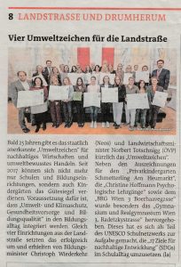 Dank jahrelangem, intensivem Engagement in den Bereichen Umwelt- und Klimaschutz, Gesundheitsvorsorge und Bildungsqualität hat unsere Schule 2025 die dritte Folgeprüfung des Umweltzeichens erfolgreich bestanden.